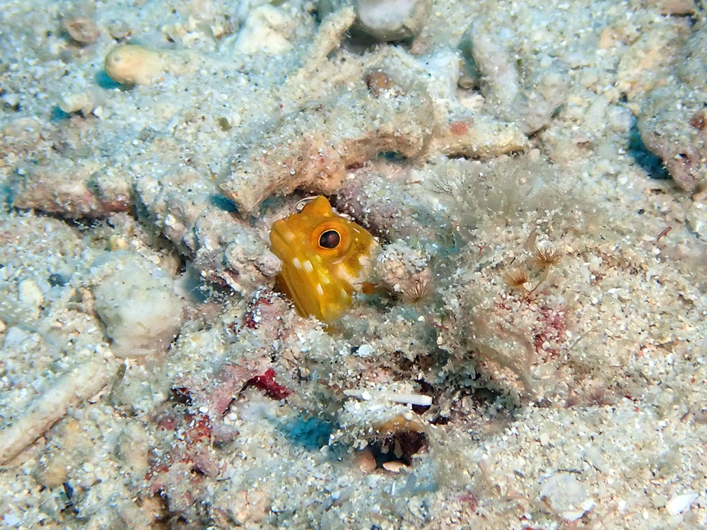 今日の主役は、鮮やかな黄色が目を引くホシカゲアゴアマダイ(通称:黄色のジョーフィッシュ)!砂地からひょっこり顔を出す姿がたまらなくキュートでした(^^♪