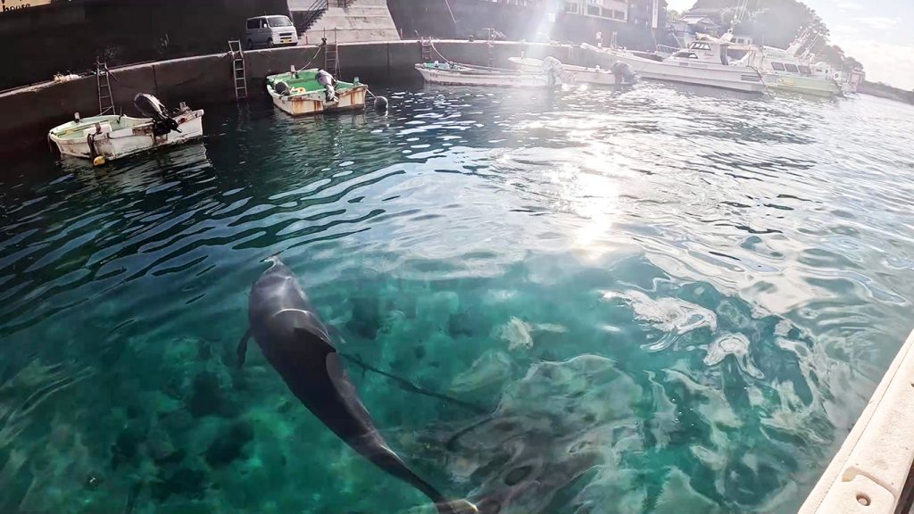 ダイビング終わりには、港に5年位居ついているという、2頭のイルカに会ってきました。