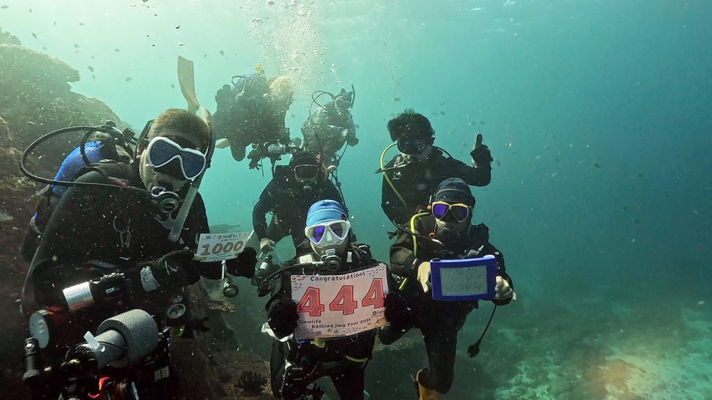 ツアー中にKちゃんが444本ダイブ達成👍 おめでとう~今年はダイビング満喫だね👍 そして、今回1000本行く予定だったkさん。