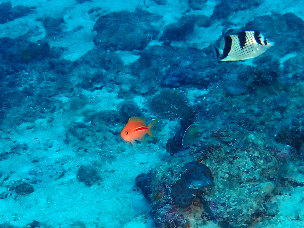 スジハナダイの若魚といった色鮮やかなハナダイたちに出会えました。