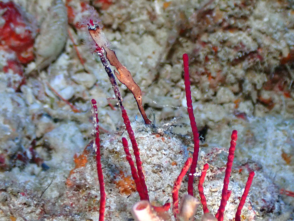 はい、次行きますよ〜!ハリメダゴーストパイプフィッシュ、カエルアンコウ幼魚…と、