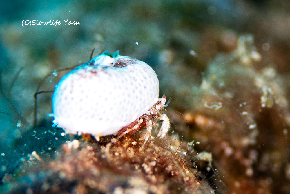 ユキンコ(オガサワラカムリ)がえらい早く動いているな~っと思ったら、ヤドカリが入ってた!(笑)