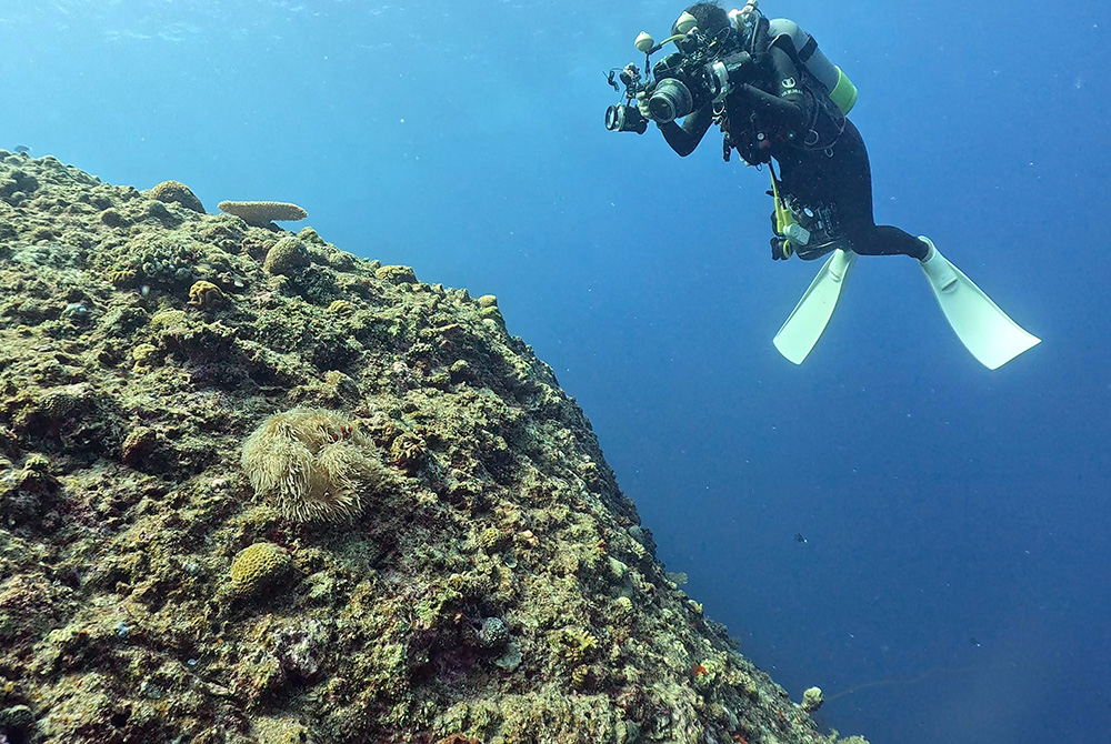 今日はリピーターさんとマンツーマンで万座フォトダイブ。