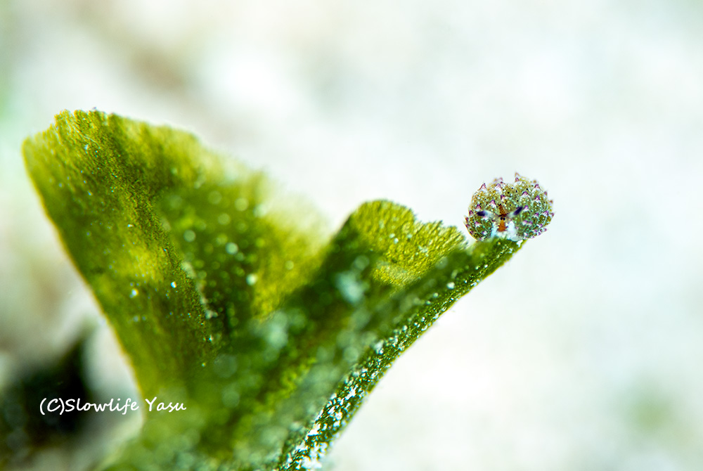 コテングノハウチワの端っこにちょこんとクサイロモウミウシ♡