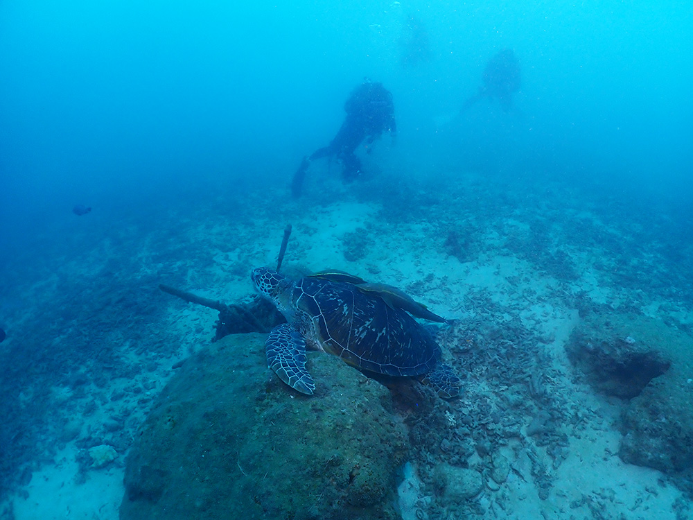 2日間とも同じアオウミガメに会いました♪ いつもここで寝てる。 カメは自分の寝床が決まっているようで、