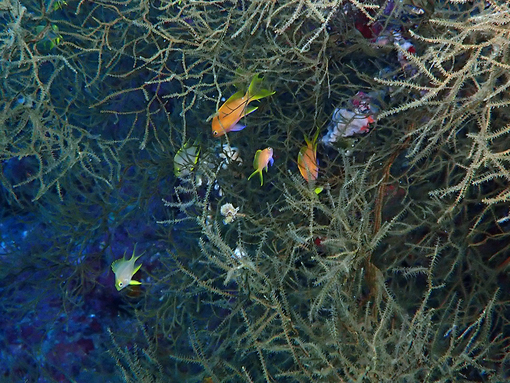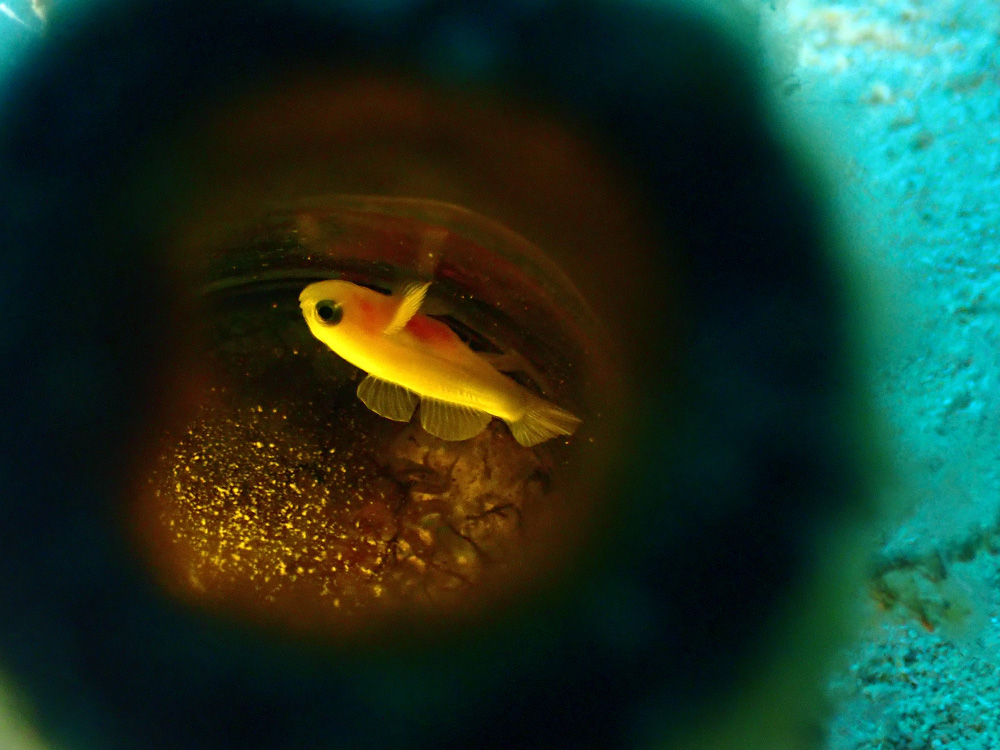 穴を抜けたあとは、スミレナガハナダイの幼魚とヤマブキスズメダイ幼魚