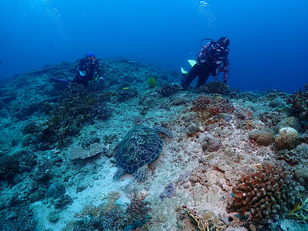 本日もリピーターさん2名と、穏やかな万座の海をじっくり3ダイブ楽しんできました😊