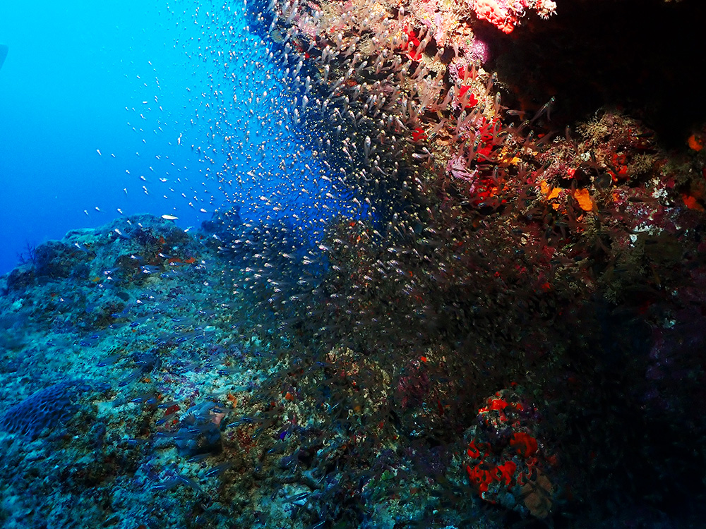 穴を抜けたあとは、キンメモドキ、スカシテンジクダイが群れています。