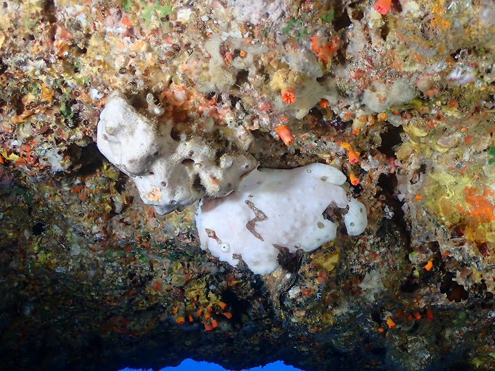 ムラサキ色のカイメンに住むカンザシヤドカリもいい感じでした!